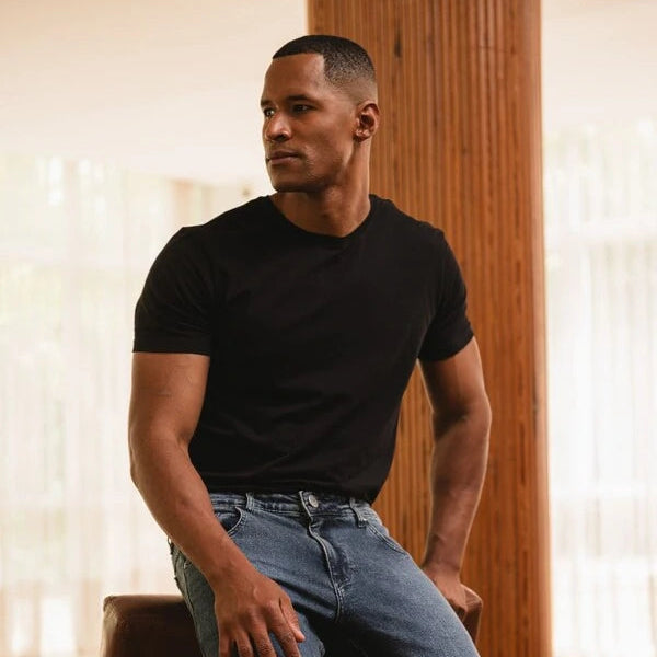 Tenho usado a camiseta da BASIQE quase toda semana e ela continua com a cor intacta, sem desbotar. O tecido é firme, não fica transparente e o caimento no corpo é muito melhor que camisetas comuns. Realmente não precisa passar.