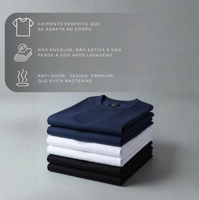 A camiseta em Algodão Egípcio possui proteção antiodor, reduzindo as bactérias que causam mau cheiro e mantendo o frescor o dia todo. Com caimento perfeito, não marca a barriga, ajusta os braços na medida certa e garante conforto com visual moderno em qualquer ocasião.